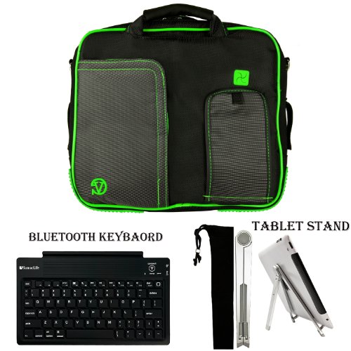 The Detailed Description of GREEN TRIM BLACK Pindar Durable Water-Resistant Nylon Protective Carrying Case Messenger Shoulder Bag For Microsoft Surface (8 Pro) / Microsoft Surface (RT) Windows 8 Tablet Computer Notebook Netbook Tab + Slim Travel Wireless Bluetooth Keyboard + High Quality 2 Way Pocket Tablet StandFeatures