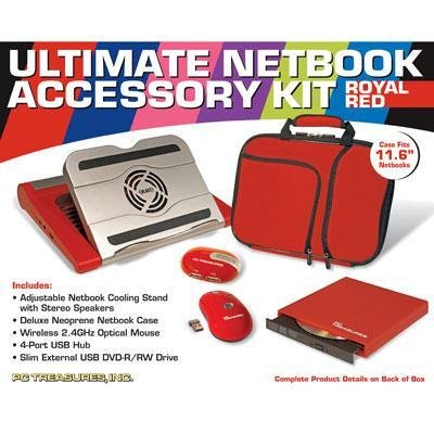 Add some color to your Netbook! This ultimate Accessory kit is sure to make your Netbook experience more efficient, portable, powerful and fun! All available in seven stylish colors - Black, Red, Green, Pink, Ice Blue, Purple and Navy Blue. BLAST Cooling Stand with Stereo Speakers-One of the most indispensable netbook items to come along, the BLAST Netbook Cooling Stand is two products in onea fully adjustable netbook stand with a built in cooling fan to keep netbooks working at peak performance and two powerful speakers that keep the sounds going strong! Pocket Pro Deluxe Neoprene Netbook Case-A must-have item for netbook portability! You wont believe how much you can store! Strategically-placed pockets hold everything from a mouse to a power supply and loads of SD Cards. This terrific case holds everything neat and complete. DVD/RW Drive - Open your netbook to limitless possibilities! Slim, trim and filled with power. Muscle-up your netbook without sacrificing mobility. Featuring the peerless Lite On DS-8A2S drive mechanism. Optical Wireless Mouse Uniquely designed with comfort in mind! Symmetrical design makes it perfect for left and right hand users. 800-DPI high definition sensor for smooth and accurate tracking. Ultimate Netbook Games Suite Includes Sudoku, Kakuro, and Friends, Mahjongg Ancient Mayas, and Worlds Best Board Games 2009all designed to run on netbooks! A $30.00 Value!