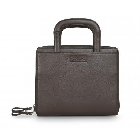 The Detailed Description of Bodhi Tech Collection - iPad/iPad 2 Case Multiview Easel Portfolio with Retractable Handles - Italian Leather - Chocolate