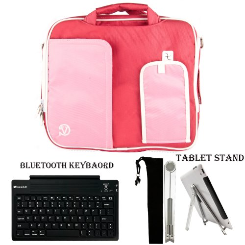 The Detailed Description of PINK TRIM BLACK Pindar Durable Water-Resistant Nylon Protective Carrying Case Messenger Shoulder Bag For Microsoft Surface (8 Pro) / Microsoft Surface (RT) Windows 8 Tablet Computer Notebook Netbook Tab + Slim Travel Wireless Bluetooth Keyboard + High Quality 2 Way Pocket Tablet StandFeatures