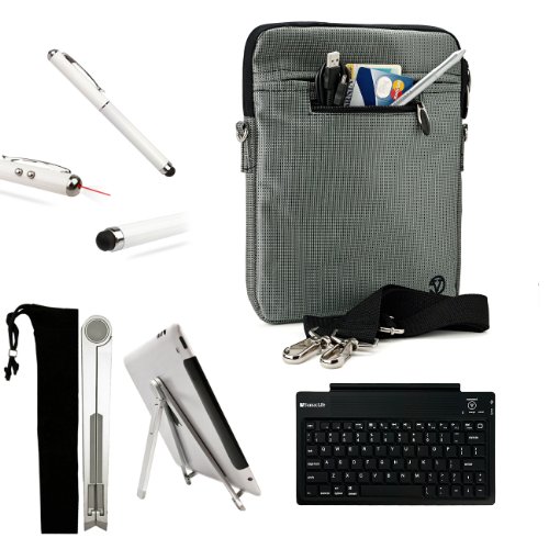 Protect your device with our Mighty Jacket Case // Fits very well with your device, feature with two zippeRED compartment for accessories and even a small notepad. Main compartment is padded with extra cushion for extra protection also featuRED with a high quality secure dual zipper. Material is made of high grade nylon material that will last a long time. This case also includes a removable shoulder strap making it easy to travel with. // SLIM COMPACT DURABLE STYLISH DESIGN MADE TO PROTECT AND LAST// (Approximate Interior Dimension: 10 x 8 x 1 in. /Approximate Exterior Dimension: 11 x 8.5 x 1.5 in.) // Includes a Slim Travel Wireless Bluetooth Keyboard // Includes a Pocket 2 Way Adjustable Tablet Stand fits anywhere and feels Strong and Sturdy // Includes a Professor Pen 3 in 1 Red Laser Pointer / LED White Light / Stylus / White Pen