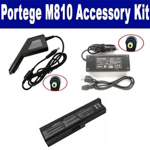 Toshiba Portege M810 Laptop Accessory Kit includes the following items: 1) SDB-3354 Laptop Battery - Lithium-Ion - Ultra High Capacity Rechargeable (6 Cell - 4400 mAh - 49wh - 11.1 Volt) Replacement for Toshiba PA3818U Laptop Battery 2) SDA-3507 Laptop Adapter (19 Volt, 3.95 Amp, 75 Watt) 3) SDA-3557 Laptop DC Adapter / Car Charger (19 Volt, 3.95 Amp, 75 Watt)
