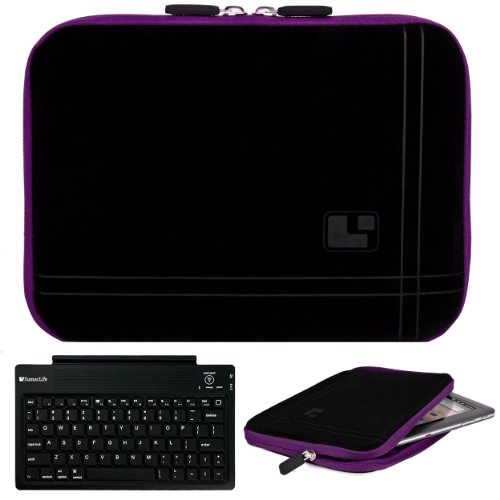 Keep your device protected at all time with this Stylish SumacLife Sleeve Cover. The SumacLife Sleeve features a fitted design for a snug, secure fit and soft, cushioned interior. The soft neoprene bubble padded interior cushions protects your device from bumps, dents, and scratches. The 4 way elastic corner restraint straps allow you to keep you device safely inside the sleeve and prevent it from falling out when of the case when opened. The dual zipper opening allows you quick and easy access to your device. It also keeps the cover firmly closed for maximum screen protection. The rear exterior pocket slot allows you to carry chargers, data cables, and memory cards along-side your device for convenience on the go. Exterior Dimensions 9.0 x 6 1/4 x 0.3 inches.Includes A completely cable-free Wireless Keyboard that uses Bluetooth technology to connect with your device. So you're free to move the keyboard just about anywhere within range and wirelessly type away. And its slim, compact design takes up much less space on your desk.