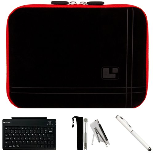Protect your device with this Premium Suede Sleeve. This case is padded to protect and secure your device from scratches, dust and fingerprints. The Interior offers aero technology providing extra patting and extra protection. There is an additional exterior pocket to store additional accessories or even a cell phone. The non-scratch exterior is soft and lightweight suede material giving it a stylish, slim and professional feel and look. Offering slimness will make it easy to store in a back pack or even just carry around when on the go! Make the Suede case the perfect carrying solution for your favorite Gadget! Also available in multiple colors! // Includes a Slim Travel Wireless Bluetooth Keyboard // Includes a Pocket 2 Way Adjustable Tablet Stand fits anywhere and feels Strong and Sturdy // Includes a Professor Pen 3 in 1 Red Laser Pointer / LED White Light / Stylus / White Pen