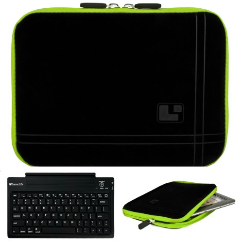 Keep your device protected at all time with this Stylish SumacLife Sleeve Cover. The SumacLife Sleeve features a fitted design for a snug, secure fit and soft, cushioned interior. The soft neoprene bubble padded interior cushions protects your device from bumps, dents, and scratches. The 4 way elastic corner restraint straps allow you to keep you device safely inside the sleeve and prevent it from falling out when of the case when opened. The dual zipper opening allows you quick and easy access to your device. It also keeps the cover firmly closed for maximum screen protection. The rear exterior pocket slot allows you to carry chargers, data cables, and memory cards along-side your device for convenience on the go. Exterior Dimensions 9.0 x 6 1/4 x 0.3 inches.Includes A completely cable-free Wireless Keyboard that uses Bluetooth technology to connect with your device. So you're free to move the keyboard just about anywhere within range and wirelessly type away. And its slim, compact design takes up much less space on your desk.